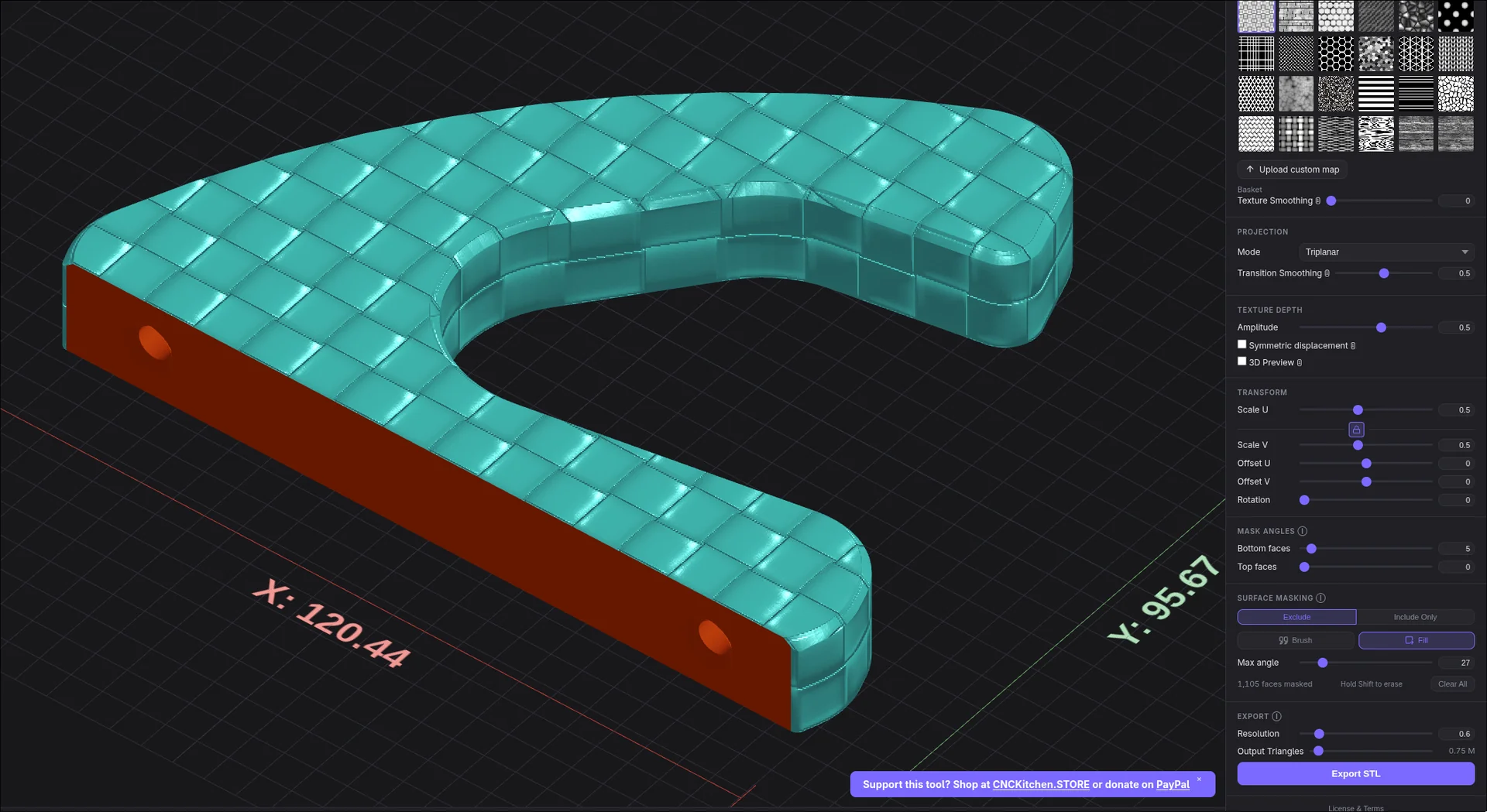 Absolutely sick texture app from cnc kitchen. Like him I've spent a bunch of time attempting and failing to learn blender, I'm so glad someone else vibe coded out such a good app that can just add texture to stls with basic masks and is the very basics of what you would want to add to 3d prints to make them interesting, I'm excited to use this for some real projects.